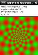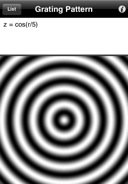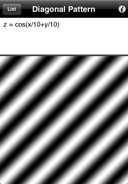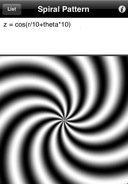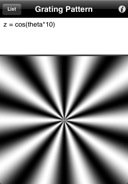 Each mathematical formula, z = f(x,y,r,theta), describes the gray or color components (z, zr, zg, zb) of the pattern as function of Cartesian or polar coordinates. Find below some beautiful examples created using the iPhone version of Patterns. The exact same expressions can be used on the iPad version.